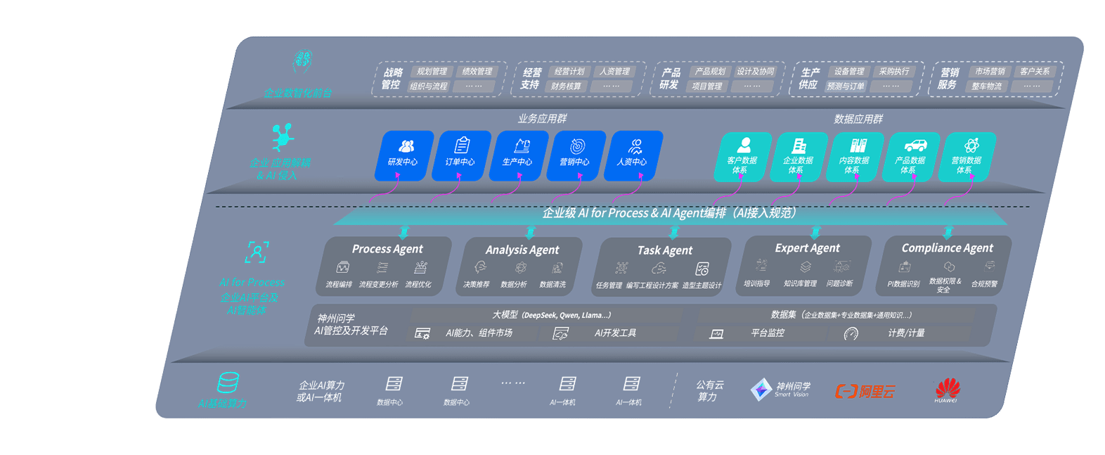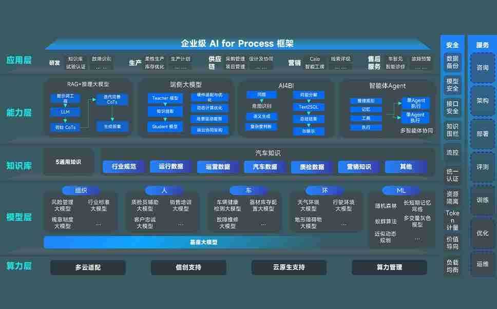 尊龙问学智车解决方案是一套基于AI技术的汽车行业智能化系统,,覆盖从底层算力到顶层AI应用的全栈方案。。。。方案由算力层、、、、模型层和应用层组成:算力层,,,,方案支持多种一体机配置,,具备云端灵活部署、、、多云适配以及动态优化计算资源的能力;模型层,,,尊龙问学平台版提供了企业级AI应用一站式构建与管理平台,,,,支持基于后训练强化技术的汽车企业专属模型的训练、、评测和运营;应用层,,尊龙问学DeepSeek版提供包括超级员工、、、智能招采、、、智能营销、、、智能客服、、、、AI for BI等一系列解决方案,,,,可助力汽车行业实现数字化转型,,,,让管理更智能、、、、响应更敏捷。。